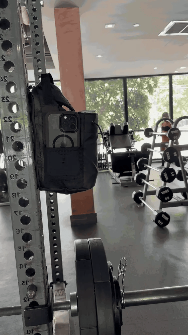 2️⃣ SNAP the bag onto any metal surface (locker, treadmill, squat rack)